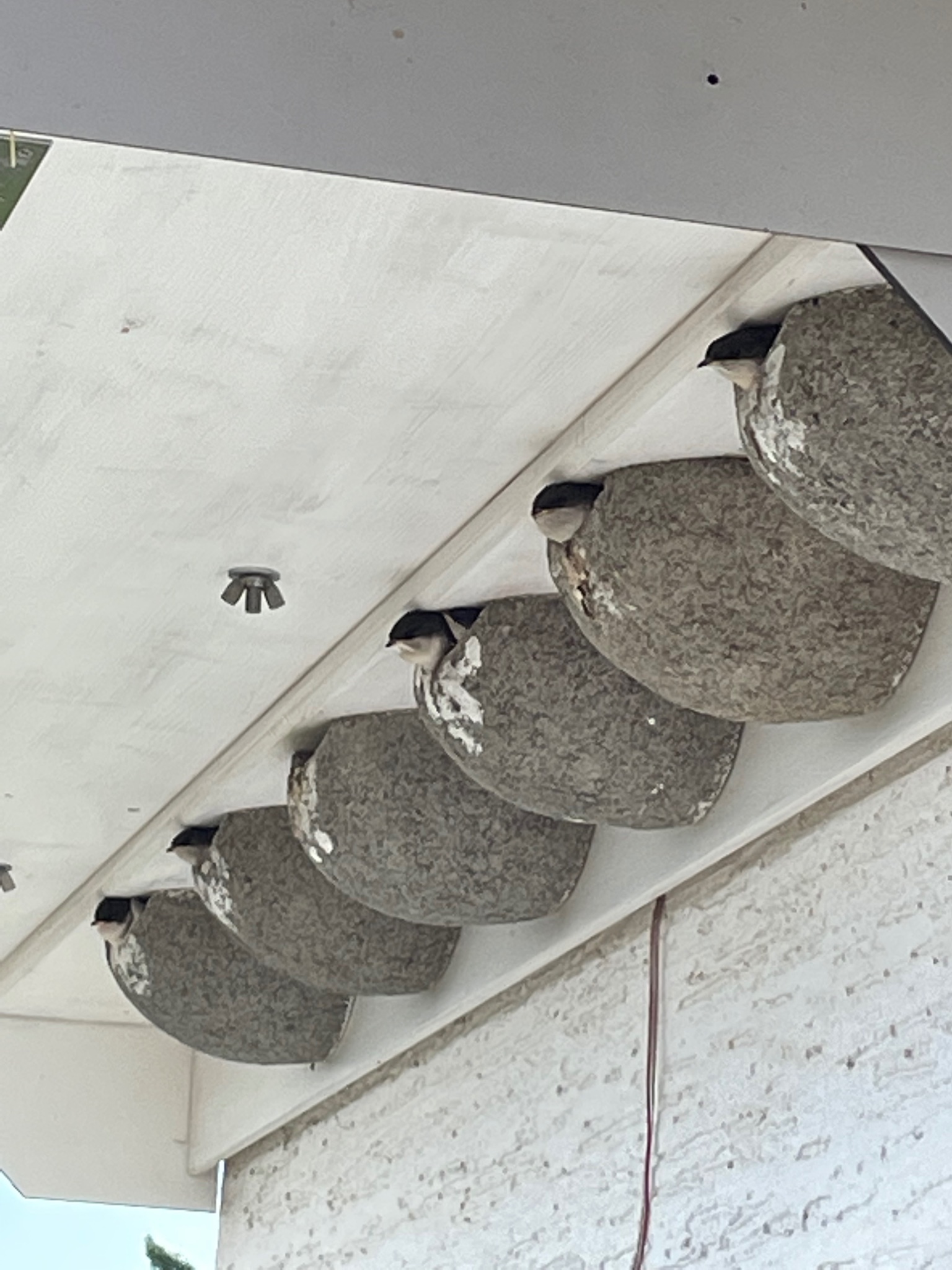 Mehlschwalben sind offenbar auch nicht alle gleich gebaut, denn eine versucht immer vergeblich, in ein Nest ( es wurde schon bebrütet ) zu gelangen. Ich werde den Eingang erst einmal etwas vergrößern .