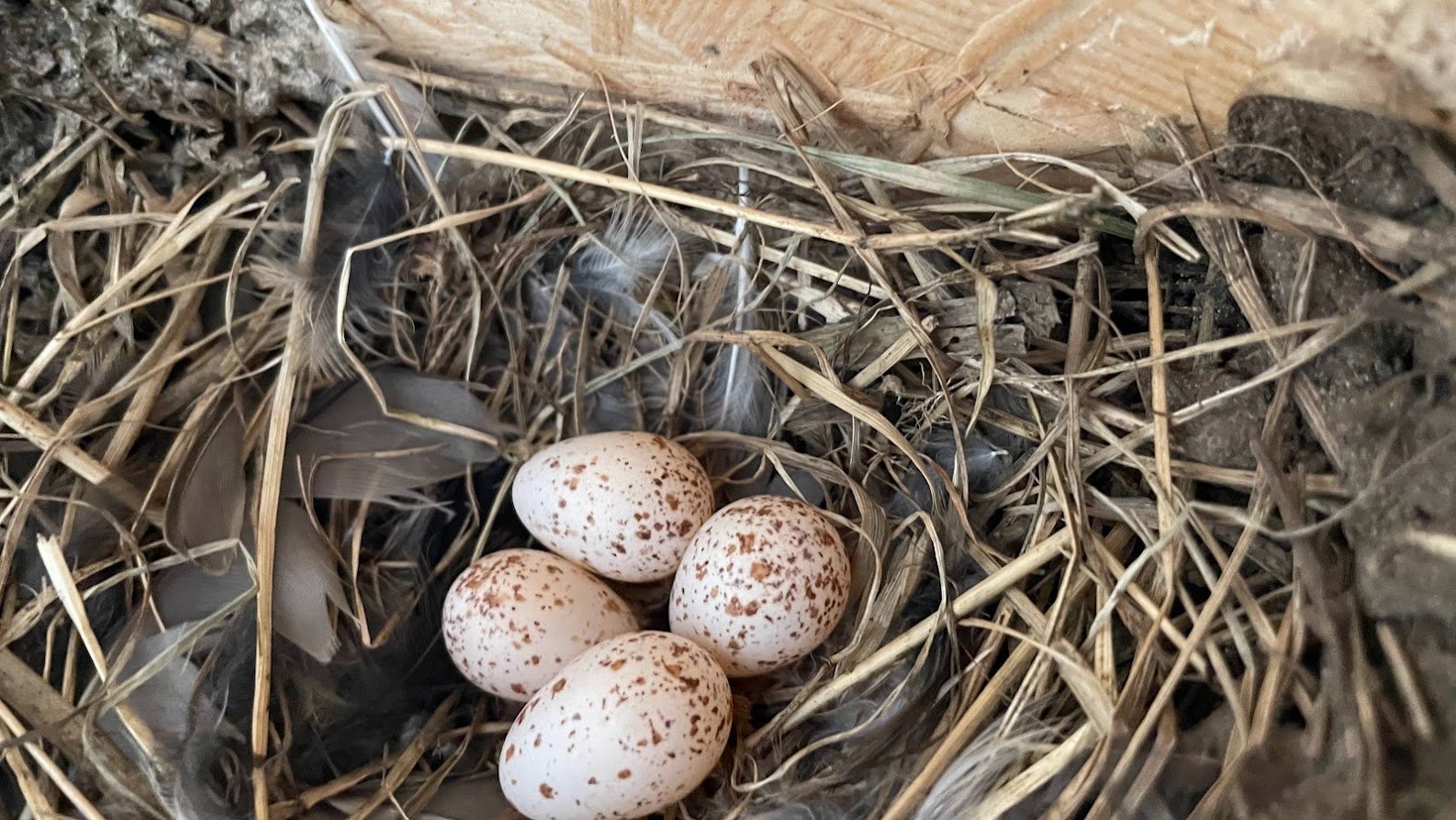 es geht tatsächlich ans Brüten, vier Eier sind im Nest. Hoffentlich kommen dieses Jahr alle durch. Wir haben das Kunstnest vor der Ankunft der Schwalben mit Kieselgur behandelt und auch unter dem Moos einen Teelöffel verteilt, in der Hoffnung, allem Ungeziefer gleich am Anfang ein Ende zu bereiten.