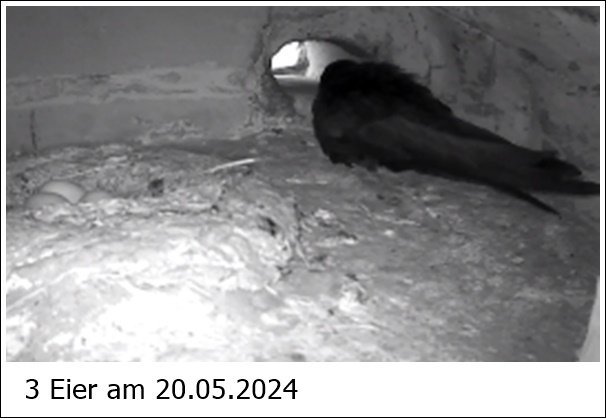 Seit gestern gibt es offensichtlich erste Besuche in meinem 3. Nistangebot an der Doppelgarage. Also evtl. ein neuntes Paar. Hierzu ein kleiner Film. das beigefügte Bild ist auch von der Doppelgarage und belegt ein Dreiergelege.