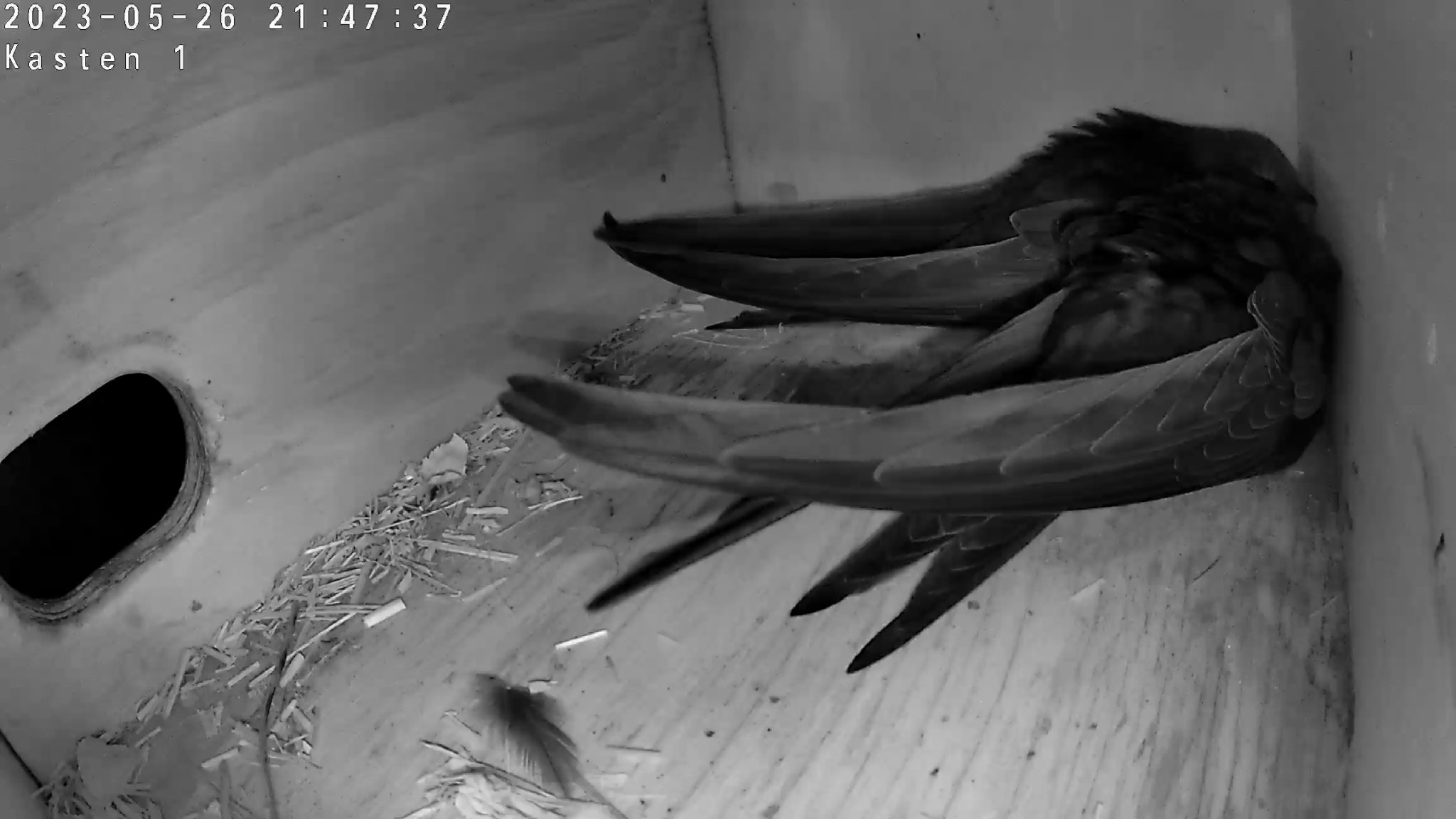 Ein Segler, der seit dem 21.05 allein in einem Kasten war,ist heute nicht drin,dafür ist ein einzelner Segler (Erste Brut 2022) seit heute nicht mehr allein.