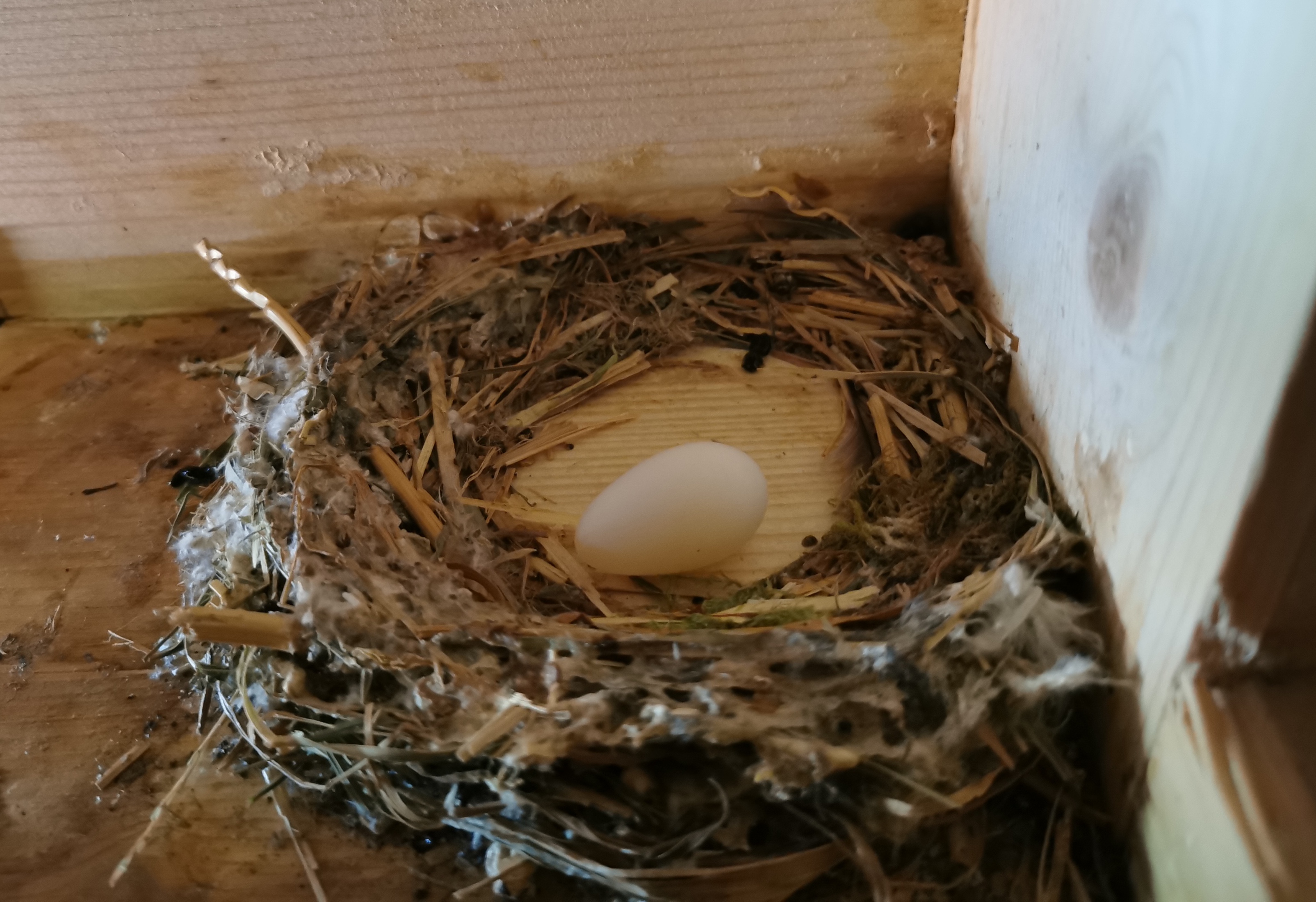 Darauf fand ich im Kasten drei tatsächlich das erste Ei dieser Saison!