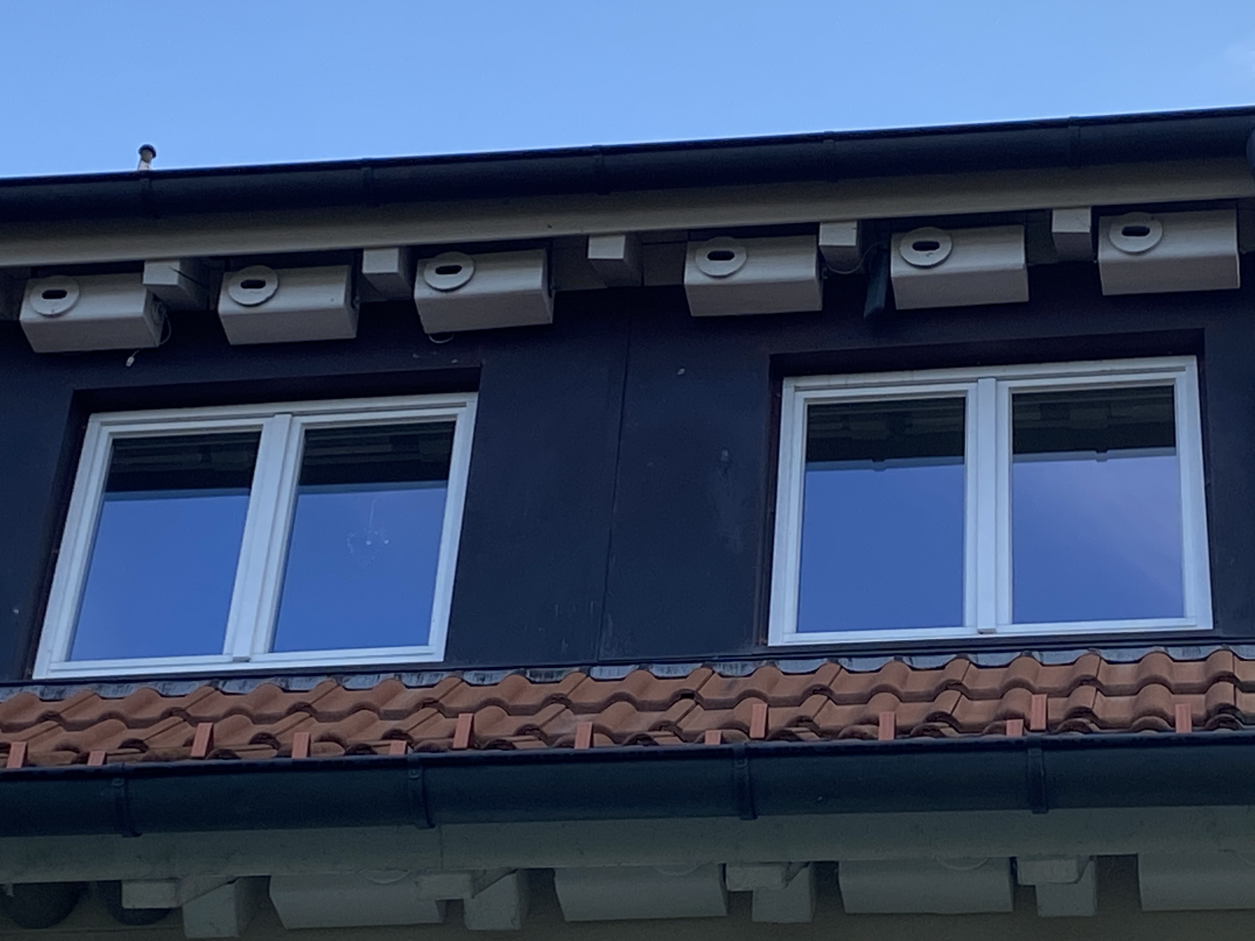 4 Brutpaare komplett und ein Mauersegler (Störenfried) insgesamt 9 Mauersegler jetzt am Gauben.