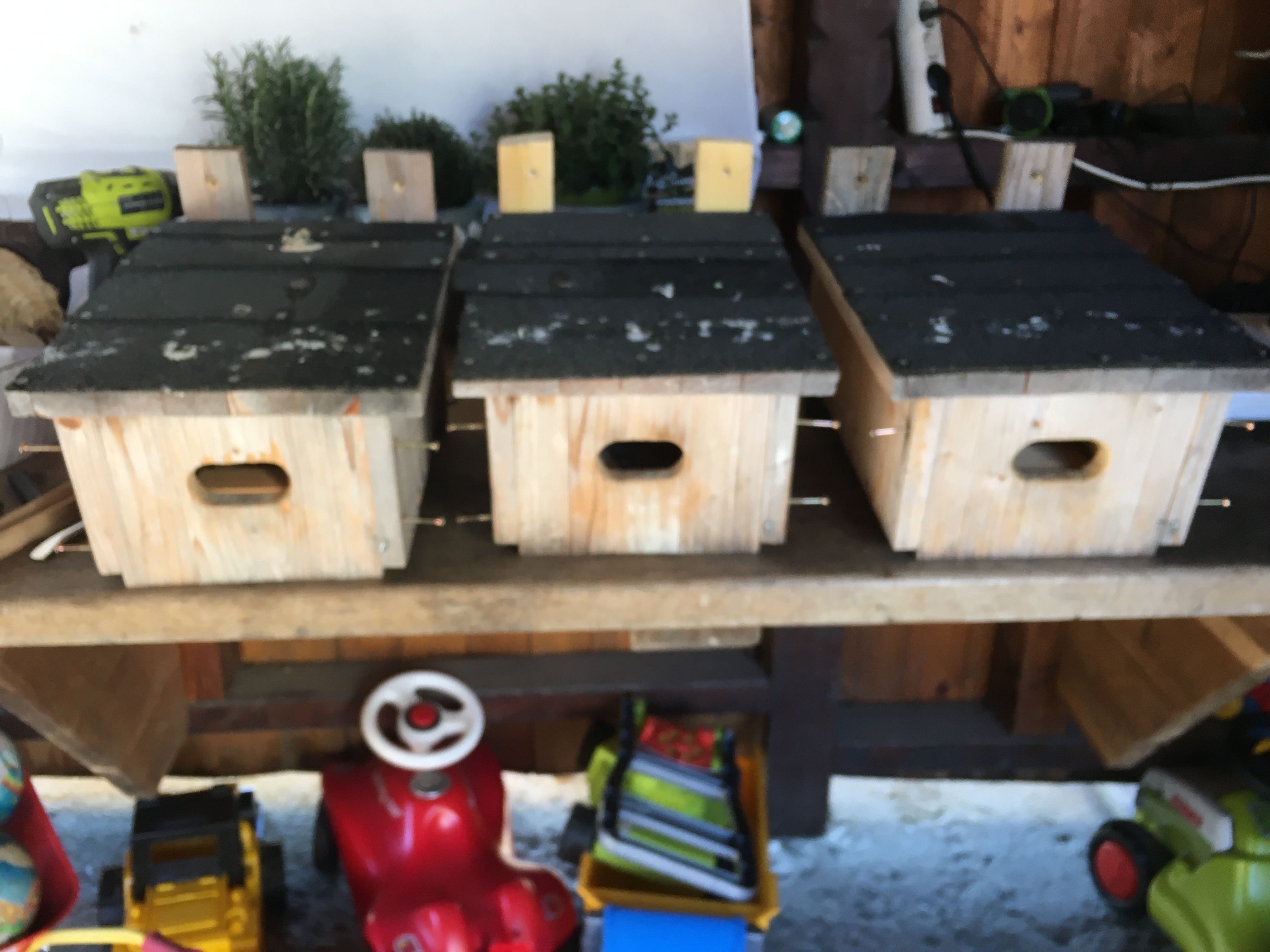 ich hatte ja auf Ende letzten Jahres auch vor an der Südseite und am Ostgiebel Kästen zusammen mit Fassadenarbeiten anzubringen. Bevor es losgehen sollte, hat sich eine neuer östlich Nachbar vorgestellt und mitgeteilt, dass ab März 2021 ein Haus gebaut wird. Gleiches auf der Nordseite. Daher und weil der Weg staubig ist, haben wie die Fassadenarbeiten auf 2022 verschoben.