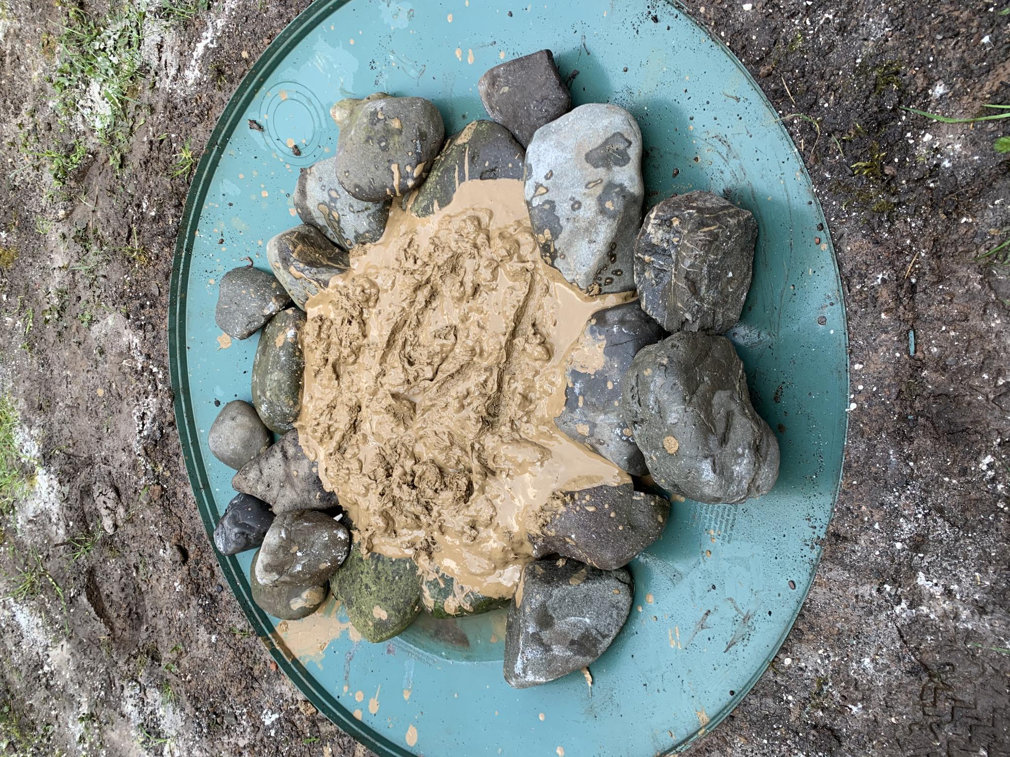 vertraute Geräusche sind auch bei uns zu hören...Heute habe ich die Lehmpfütze fertig gestellt. Habe den Deckel unserer kaputten Regentonne genutzt. Ein lieber Bekannter hat mir sehr alte Lehmziegel zur Verfügung gestellt...Konnte auch lehmigen Boden ausfindig machen und habe etwas mitgenommen...Hoffe sie wird angenommen...