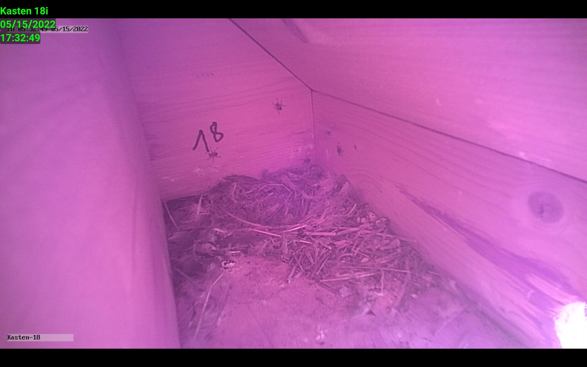 Erst mit dem zweiten Vogel in der linken Nisthilfe tauchen dort dauernd Lausfliegen auf. Ich habe den Eindruck das sie mit der Rückkehr eingeschleppt wurden. In der rechten Nistkammer habe ich bisher noch keine auf Bildern gesehen.