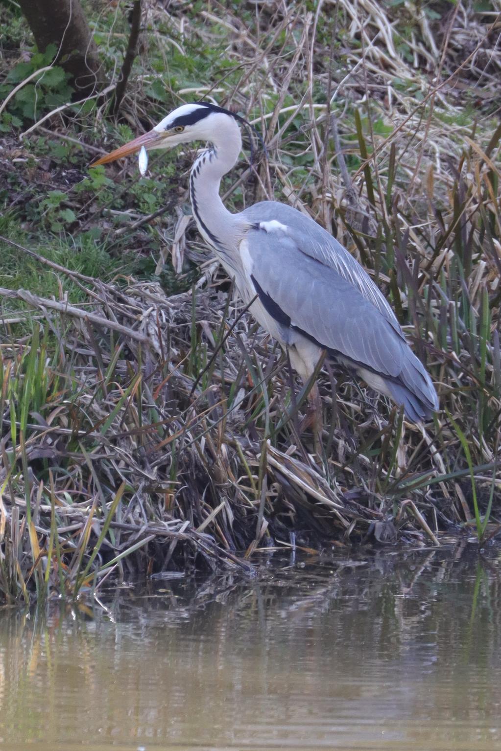 der Graureiher ist auch hier wieder unterwegs. Im Winter war er nicht zu erblicken.
