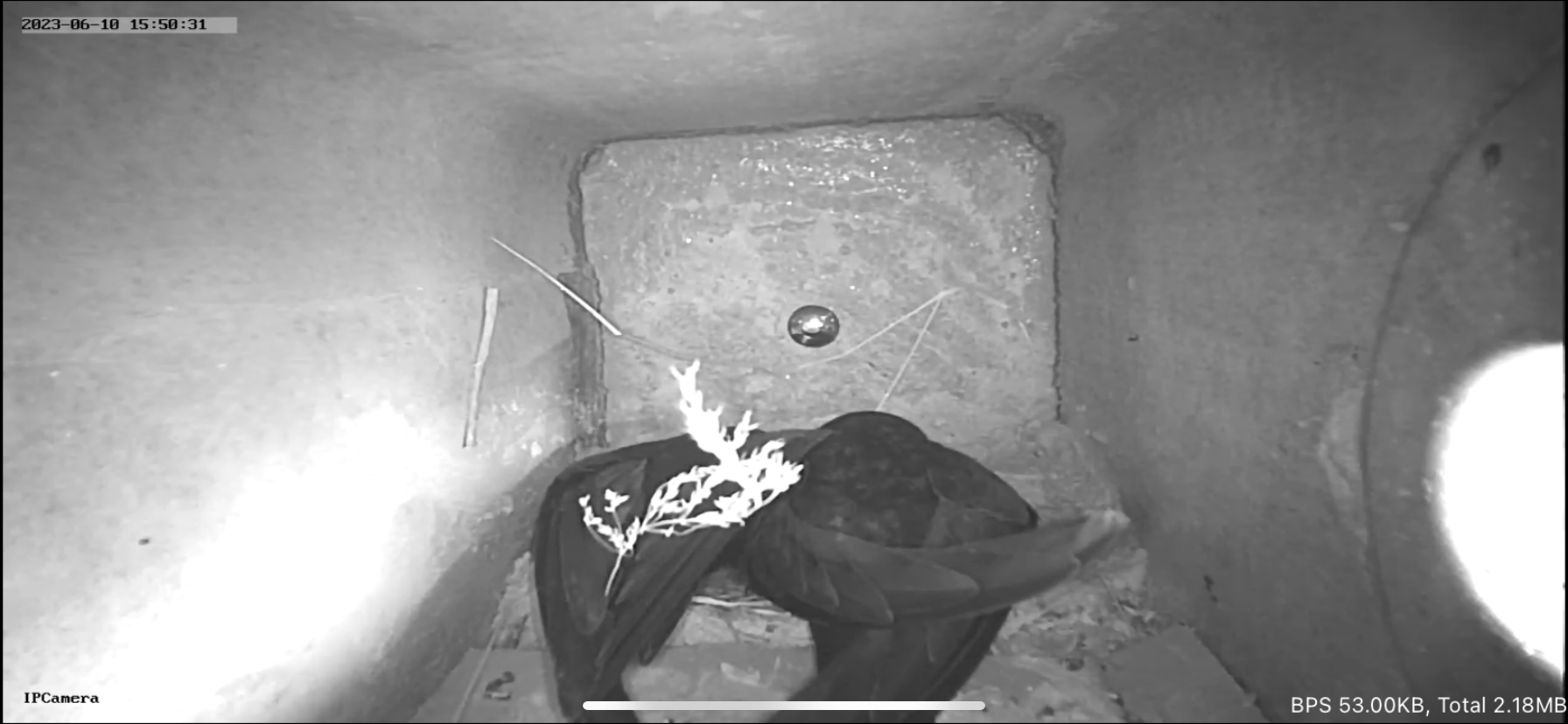 der Nestbau schreitet voran, allerdings eher im vorderen Kastenbereich in Einflugnähe, ok sie haben so entschieden, eine Ersatzbrut scheint möglich.
