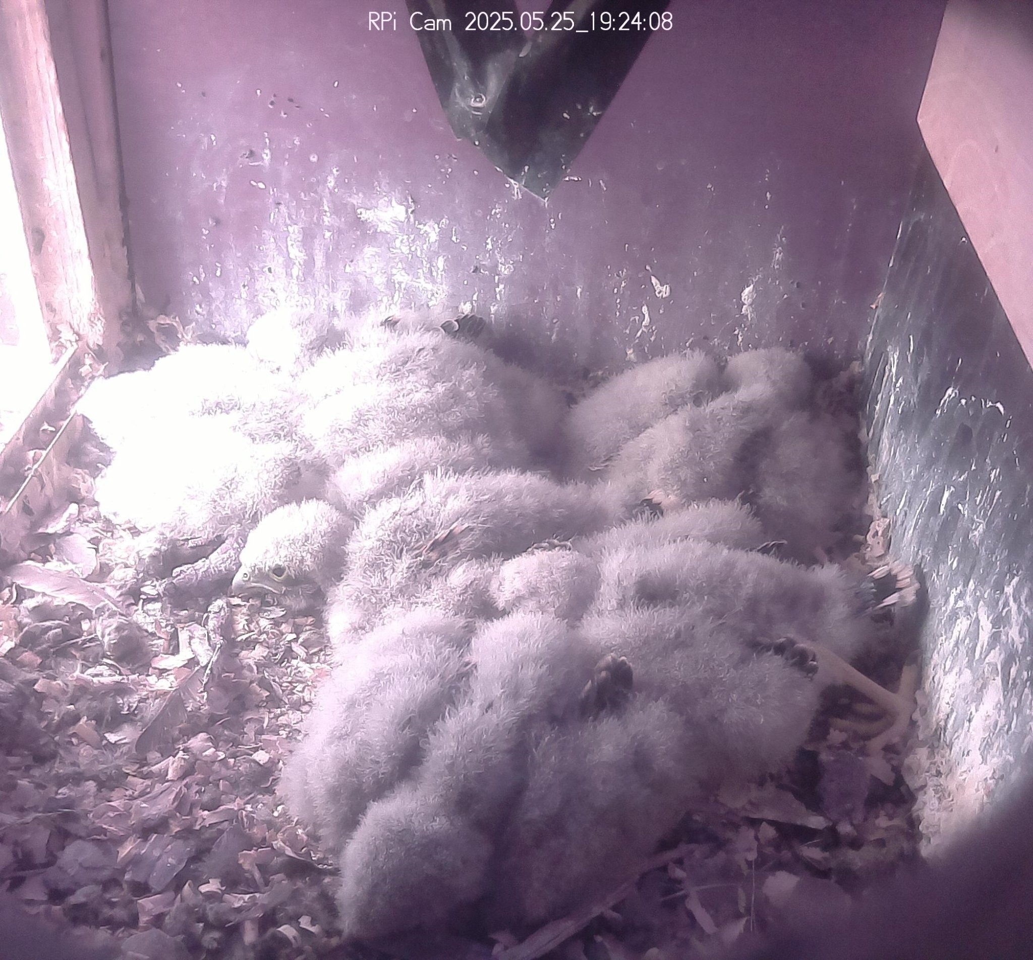 Ein Rotmilan streift hier rum und die Alten versuchen den auf Abstand zum Kasten zu halten.