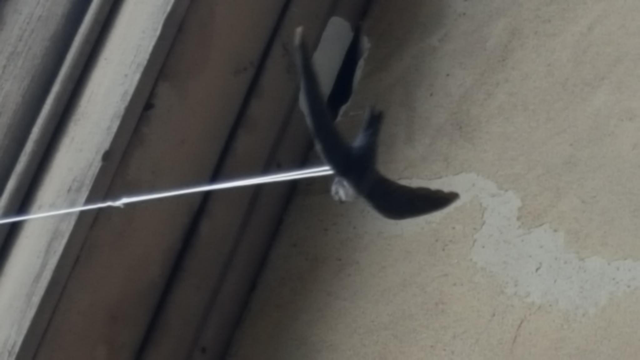 heute morgen schaute ich aus dem Fenster unterhalb des Kastens in dem ein Segler seit dem 24 .eingezogen ist ( am 25.um die Ecke auch ein Einflug/