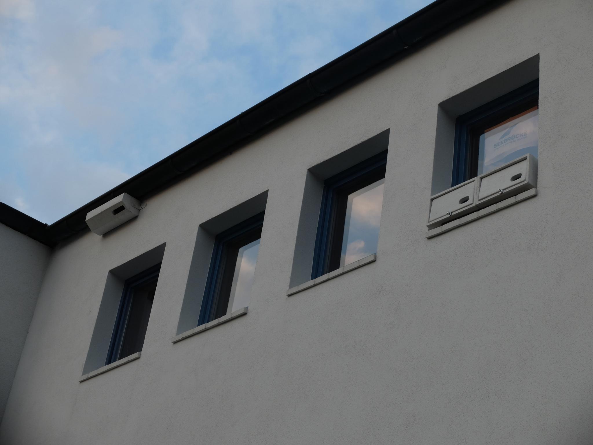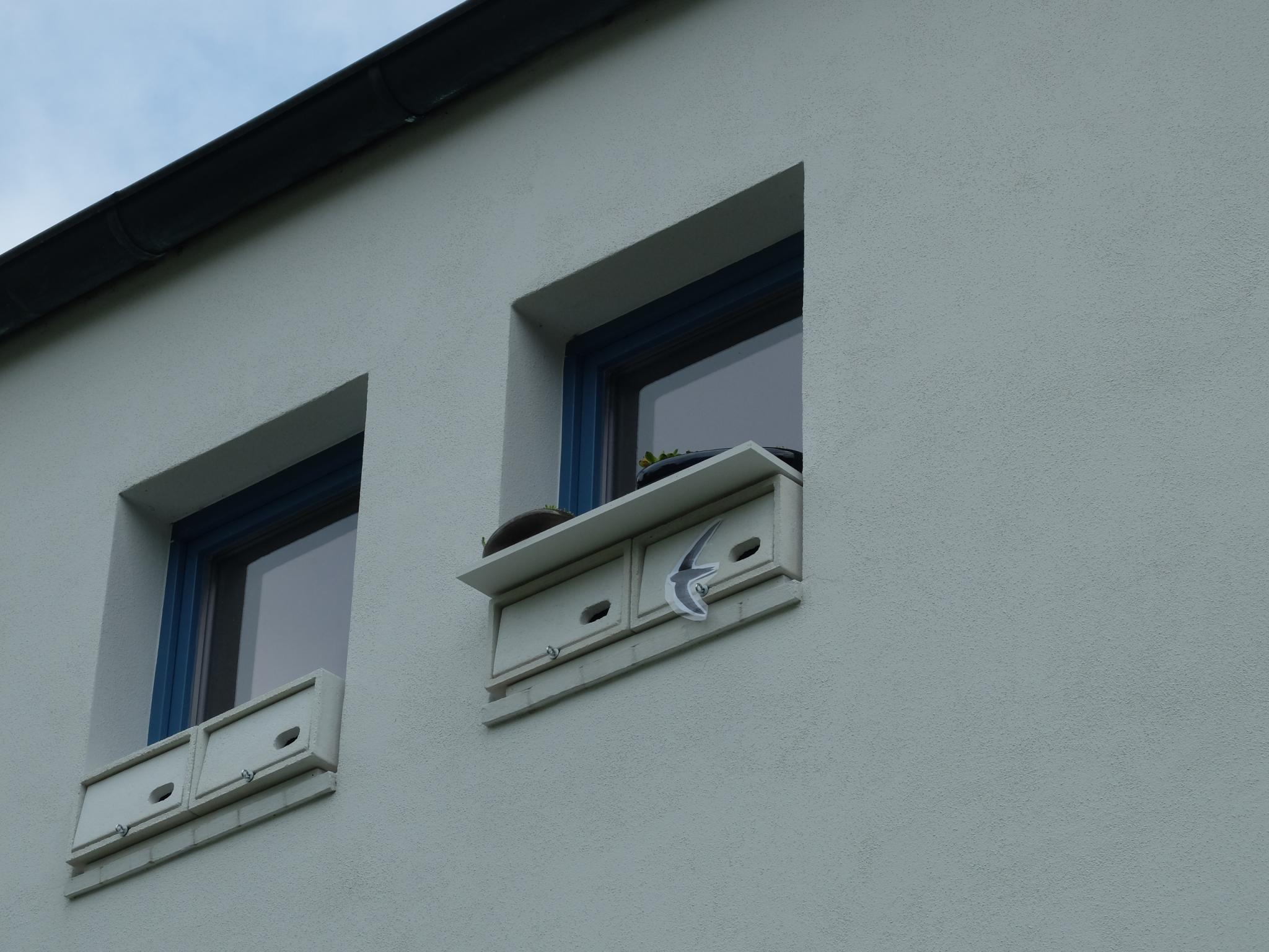 zwischenzeitlich ist das (Fertigteil-)Haus auf der Ostseite gestellt und beeinträchtigt in keinster Weise den An- und Abflug am Ostgiebel. Da bei mir noch keine Segler eingetroffen sind und ich noch 2 Kästen aus Holz neben einem weiteren MF1, der ins Giebelfenster kommt, habe, möchte ich die Zeit und das Wochenende nutzen und diese anbringen.