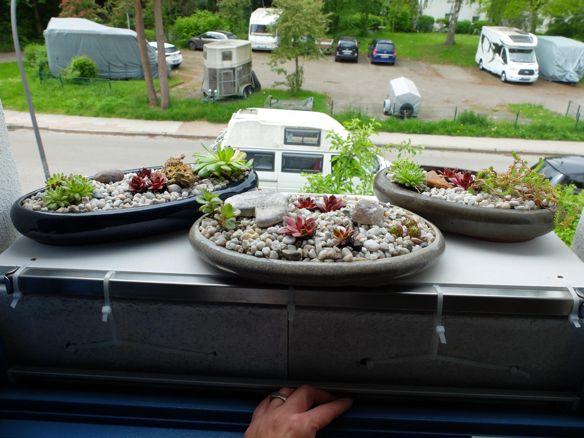 Meine Kästen haben nun einen kleinen Dachgarten in Bonsaischalen. :D