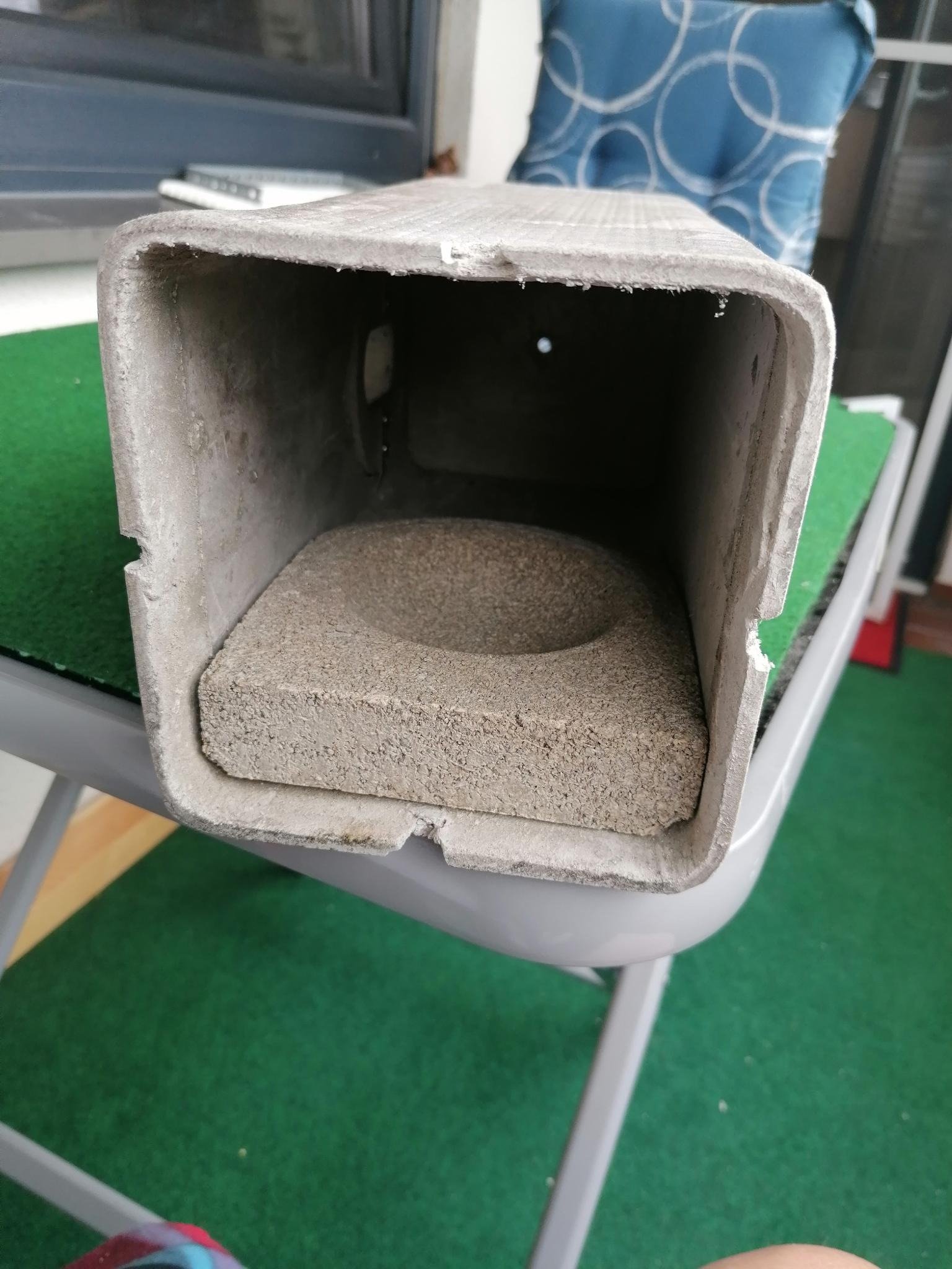Ich denke ein Holzbrett von 2 cm Dicke mit einer 10 cm Bohrung ist die beste Variante für eine Nistmulde. Den oberen Rand etwas anschrägen und eventuel eine Pappe drunter packen. So kann man das Teil besser rausnehmen und den Kasten reinigen. Wenn es die Kastengröße her gibt die Größe der Nistmulde dem Grundriß des Kastens anpassen.