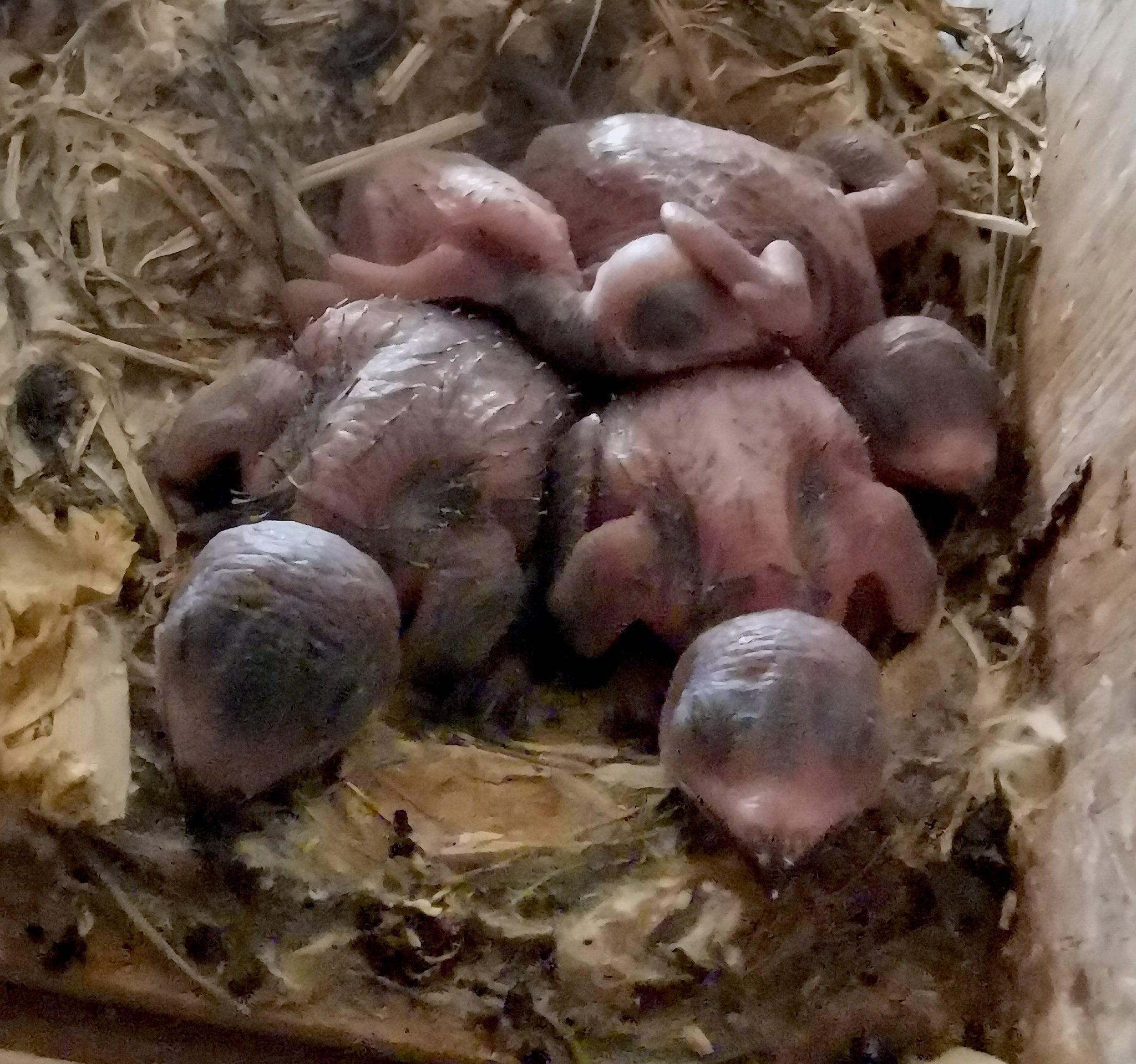 Eines hatte ich in Kasten 6. Das letztgeborene Küken (auf dem Foto oben, querliegend) konnte sich im Kampf um Futter zu wenig durchsetzen. Ich legte es zu einem Einzelküken in Kasten 1, bevor es aus dem Nest verdrängt wurde. Dort war die weitere Entwicklung problemlos.gibt es in diesem Jahr 4rer- Gelege?