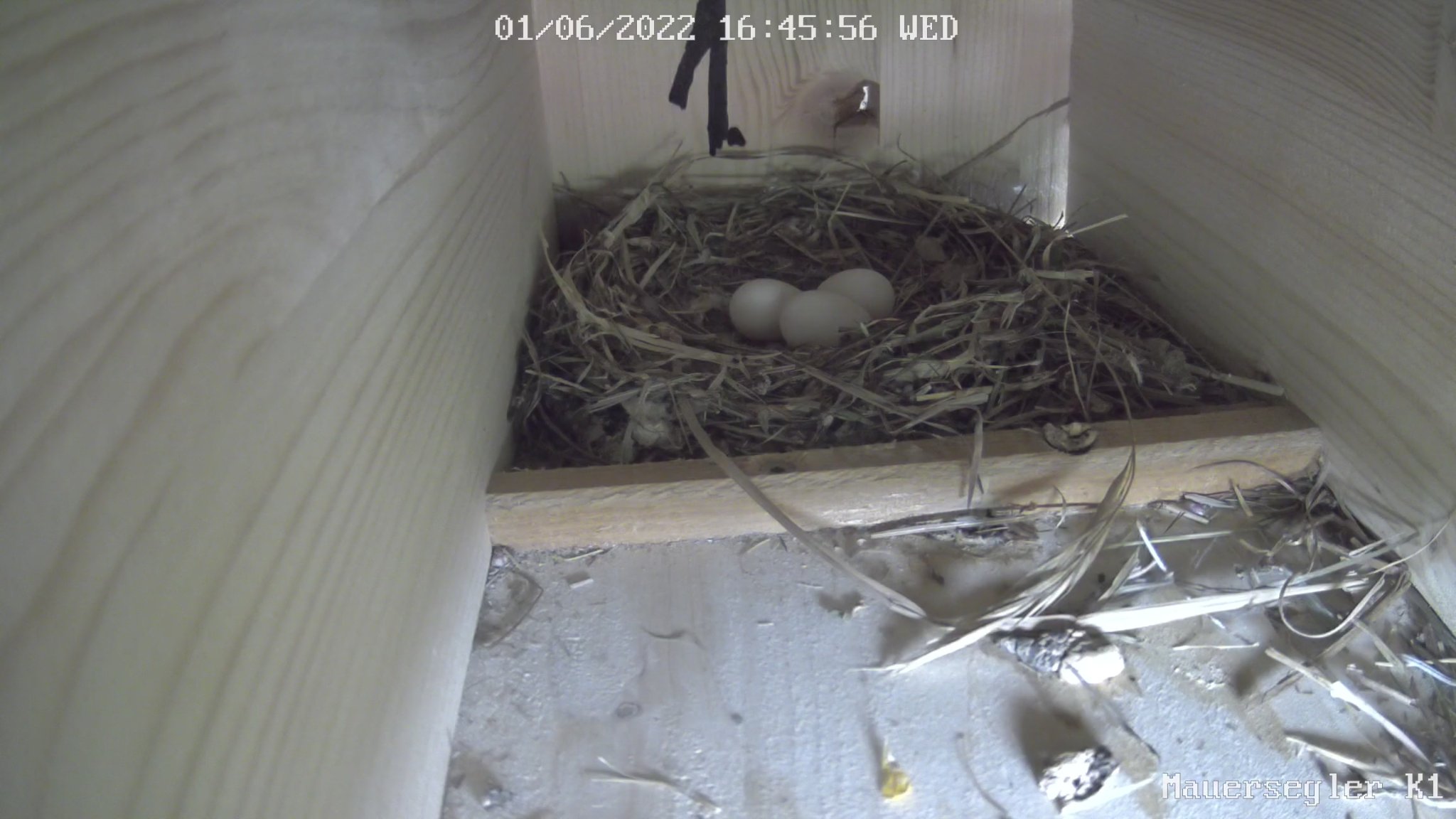 Zumindest sind jetzt alle drei Nistplätze mit jeweils drei Eiern belegt.