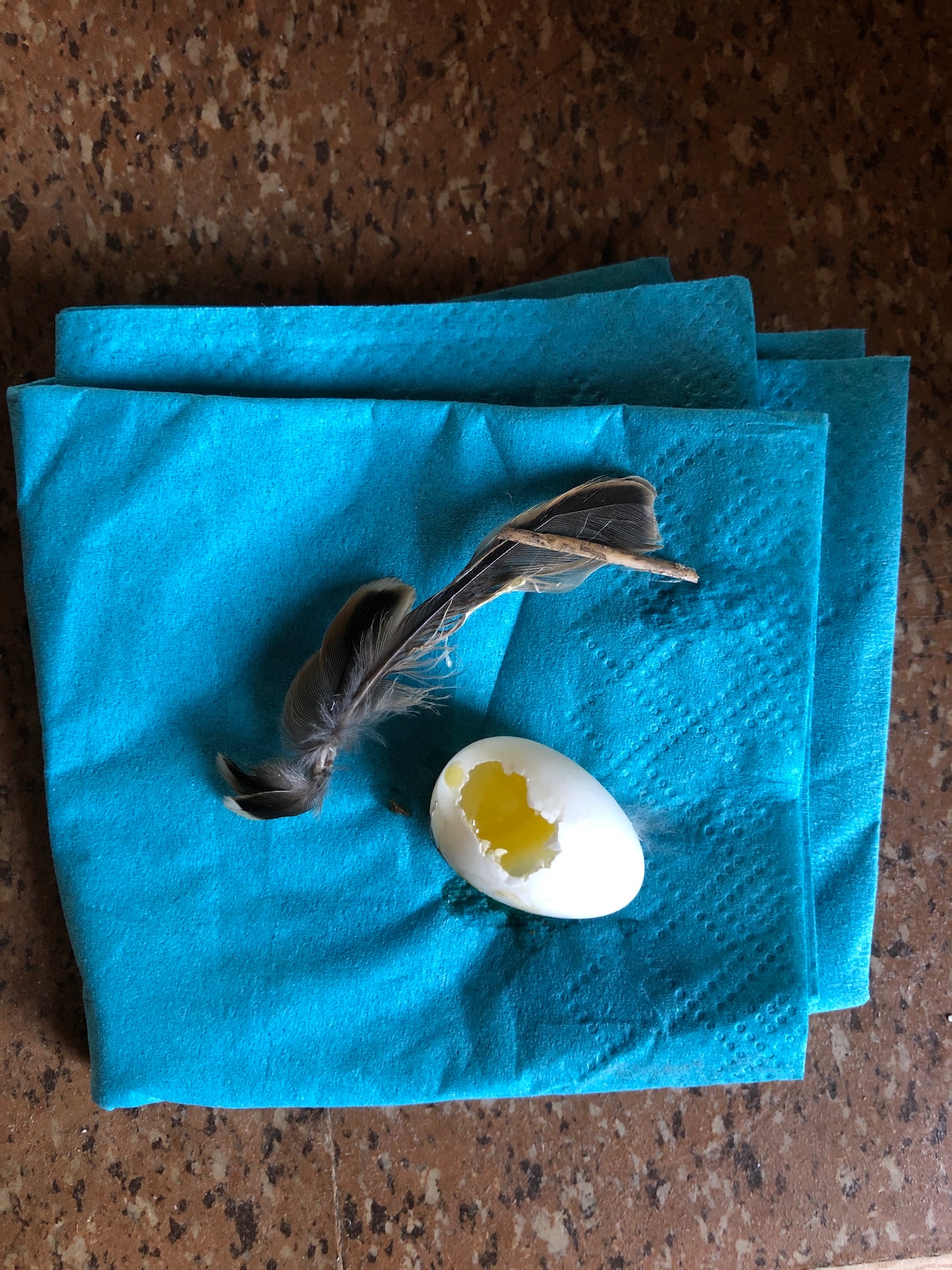 In beiden Fällen war es das Weibchen, das Eier aus dem Nest holt.