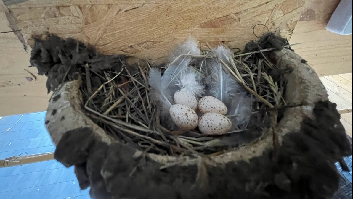 Bei unserer Carport-Bewohnerin sind es vier Eier geworden, wir rechnen pünktlich zum Monatsanfang mit Schwalbennachwuchs. Die Austauschnester stehen bereit.