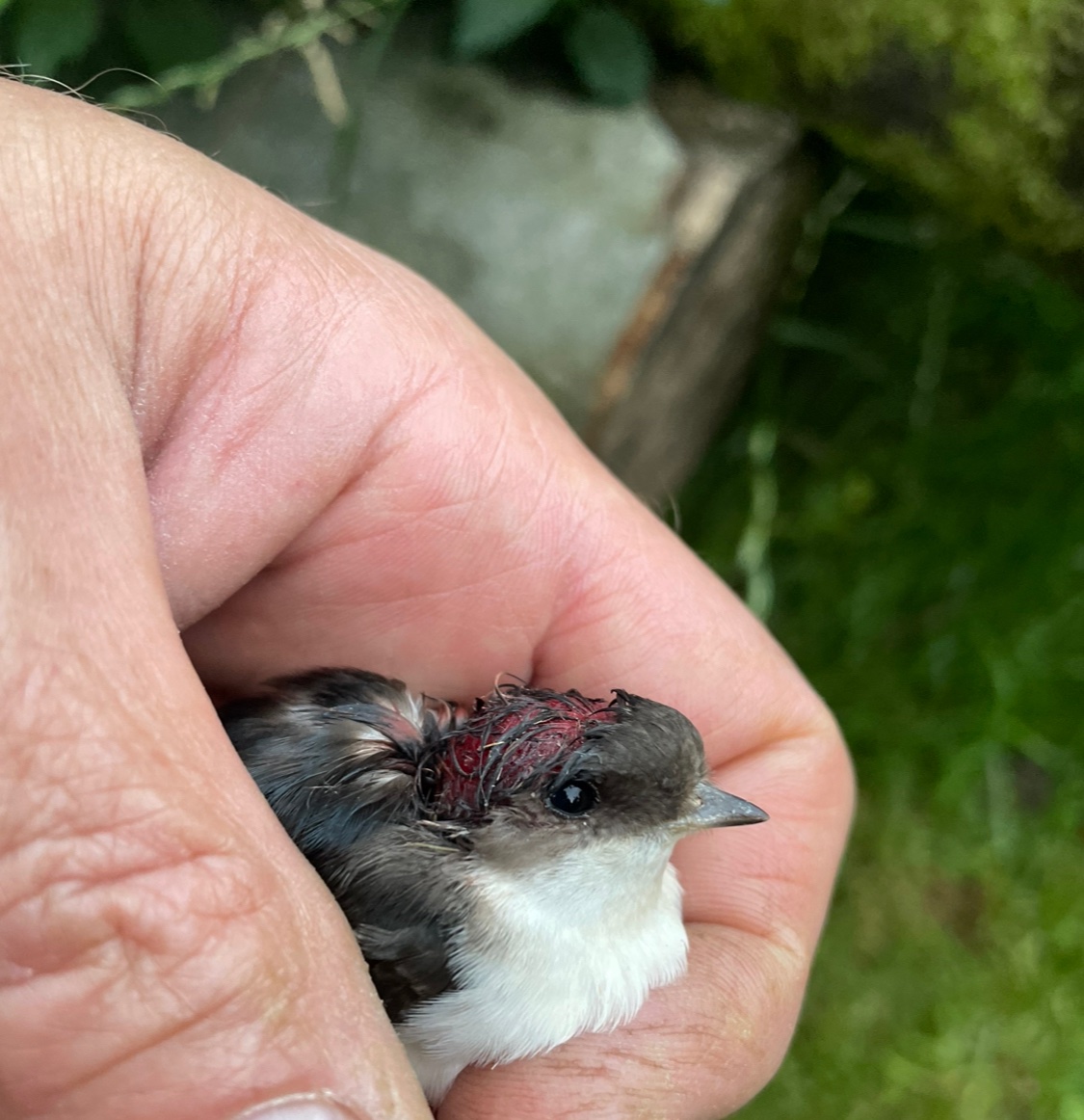 Dürfte auch ganz schön eng in dem Nest sein, wenn da gleich vier Schwalben drin sind. Hatte schon die Befürchtung, daß sie eine von den ganz jungen Schwalben verdrängt und es dabei heraus fällt. Aber ging ja noch mal gut.
