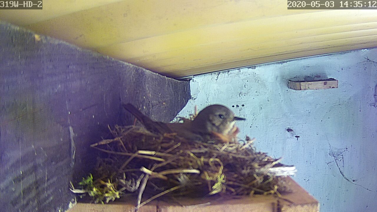 Mein Rotschwänzchenweibchen sitzt nun schon seit dem 23.04.2020 auf dem Nest und brütet.