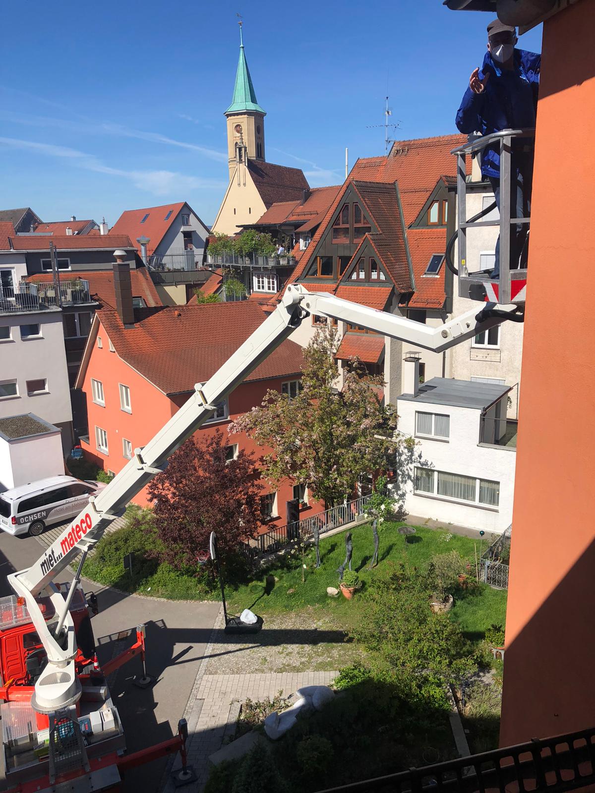 Hier mal ein par Bilder aus 14m Höhe in der Ravensburger Altstadt an einem Treppenhaus/Aufzug-Anbau .