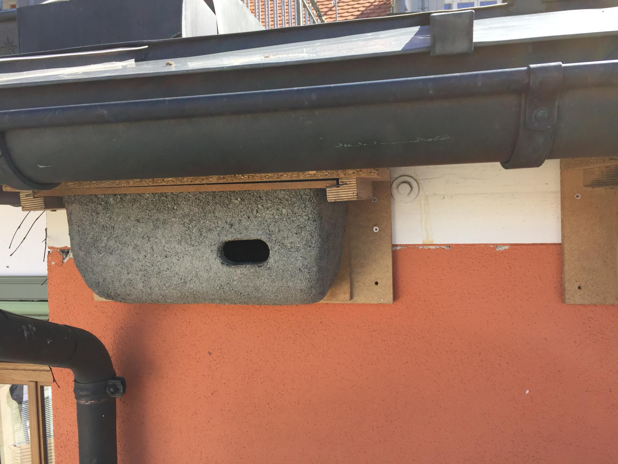 Meine Mehlschwalben-Anbaunisthilfe ist montiert und ich bin gespannt, ob die Mehlschwalben zurückkommen werden und was mit der neuen Anbaunisthilfe geschehen wird.