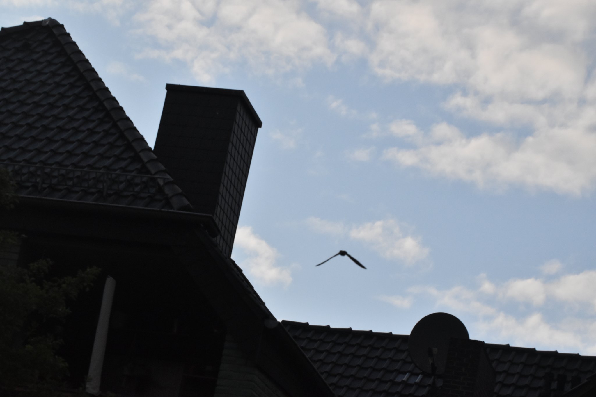 Hier haben sie Segler noch einmal richtig aufgedreht. Tagsüber war es ruhiger als sonst. Ab 20:00 Uhr dann eine rasante Zunahme über der Kolonie. Beim Zählversuch einmal über 50 MS. Wie in den letzten Jahren schon beobachtet, nimmt die Anzahl der Sucheranflüge auf Nistplätze nun stark ab. Die Screaming-Gruppen bleiben meist deutlich höher als das Haus. Erst nach 21:30 Uhr kam es im Gefolge der fütternden AV zu einigen zaghaften Anflügen.