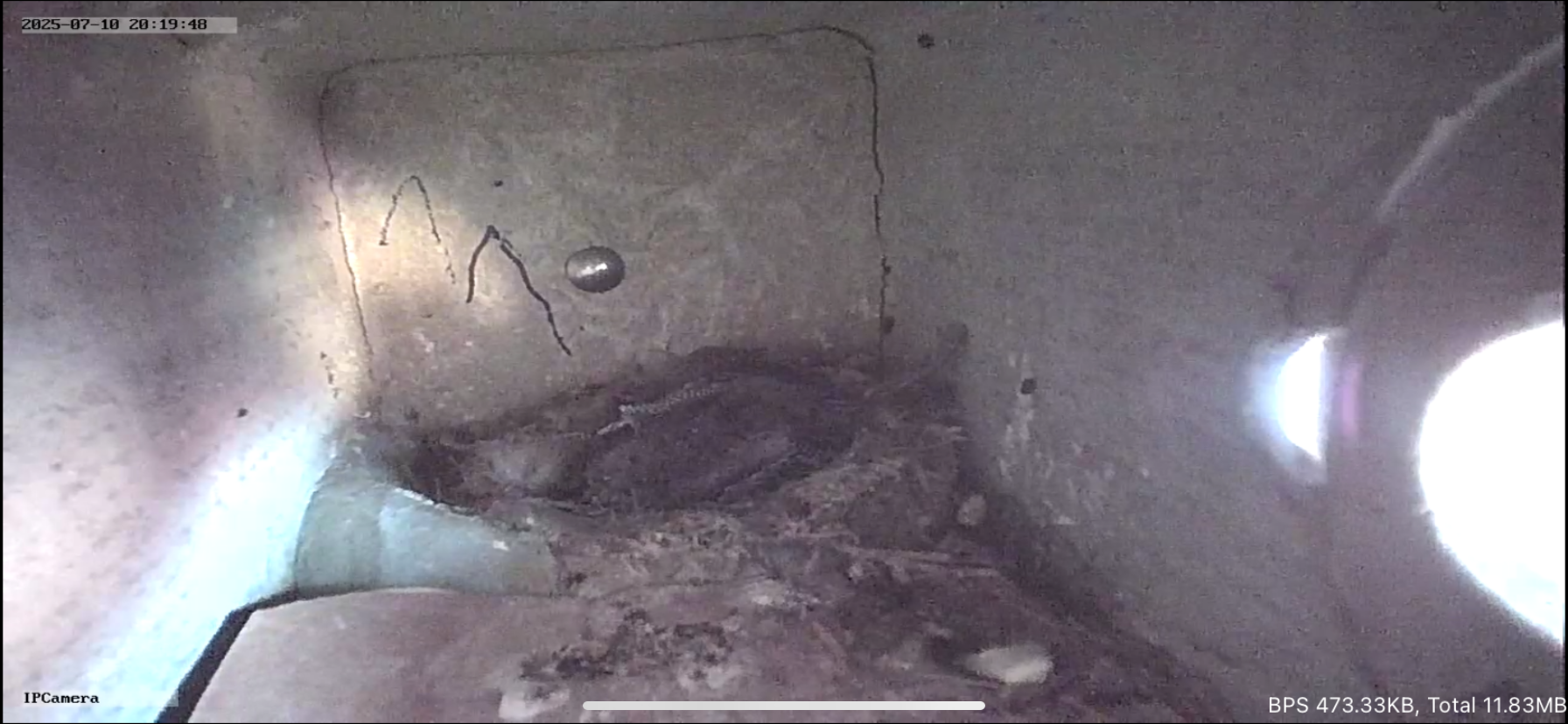 In dem Kasten , aus dem neulich , bei der großen Hitze schon ein Segler auf den Dachboden entkam, ich berichtete, war kein Jungvogel mehr vorhanden . Einer wird wohl regulär ausgeflogen sein , der andere hat wohl wieder die andere Richtung eingeschlagen und muss wohl durch einen ca. 25 mm grossen Schlitz , den ich nach Installation des Einbaukastens zur Belüftung gelassen hatte ,auf den Dachboden gelangt sein .