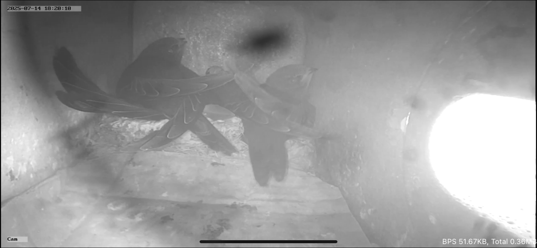 Insgesamt ist die Saison sehr außergewöhnlich. Am 7/7. 22.20 gab es abends die ersten beiden Jungsegler Ausflüge zweier Geschwister direkt hintereinander in die windige, herbstlich kalte Nacht. Das war so früh wie noch nie und es lässt sich ein Eiablagebeginn für etwa den 3. Mai daraus erschließen. In den nächsten Tagen folgten weitere Ausflüge und 3 Paare + der Einzelsegler haben ihre schwierige Mission bereits mit Bravour gemeistert und insgesamt 12 junge Segler sind schon in ihrem Element.