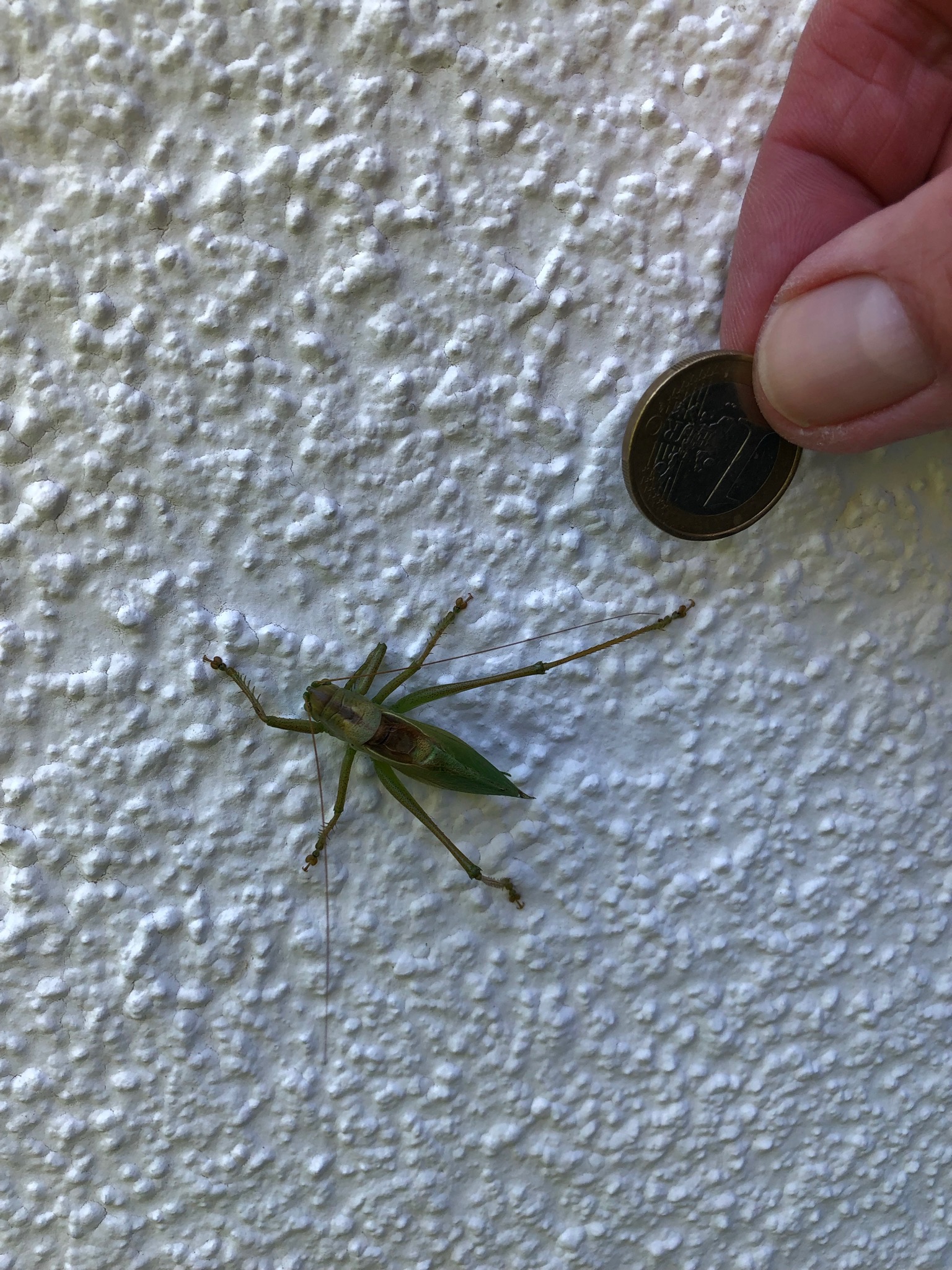 Viele Unwissende denken bei dem Wort Heuschrecke an Heuschreckenplage. So etwas gibt es bei uns nicht. Das Grüne Heupferd ernährt sich u.a. von Kartoffelkäfern. Klar, dass diese Insekten in der Gunst bei mir ganz oben stehen.