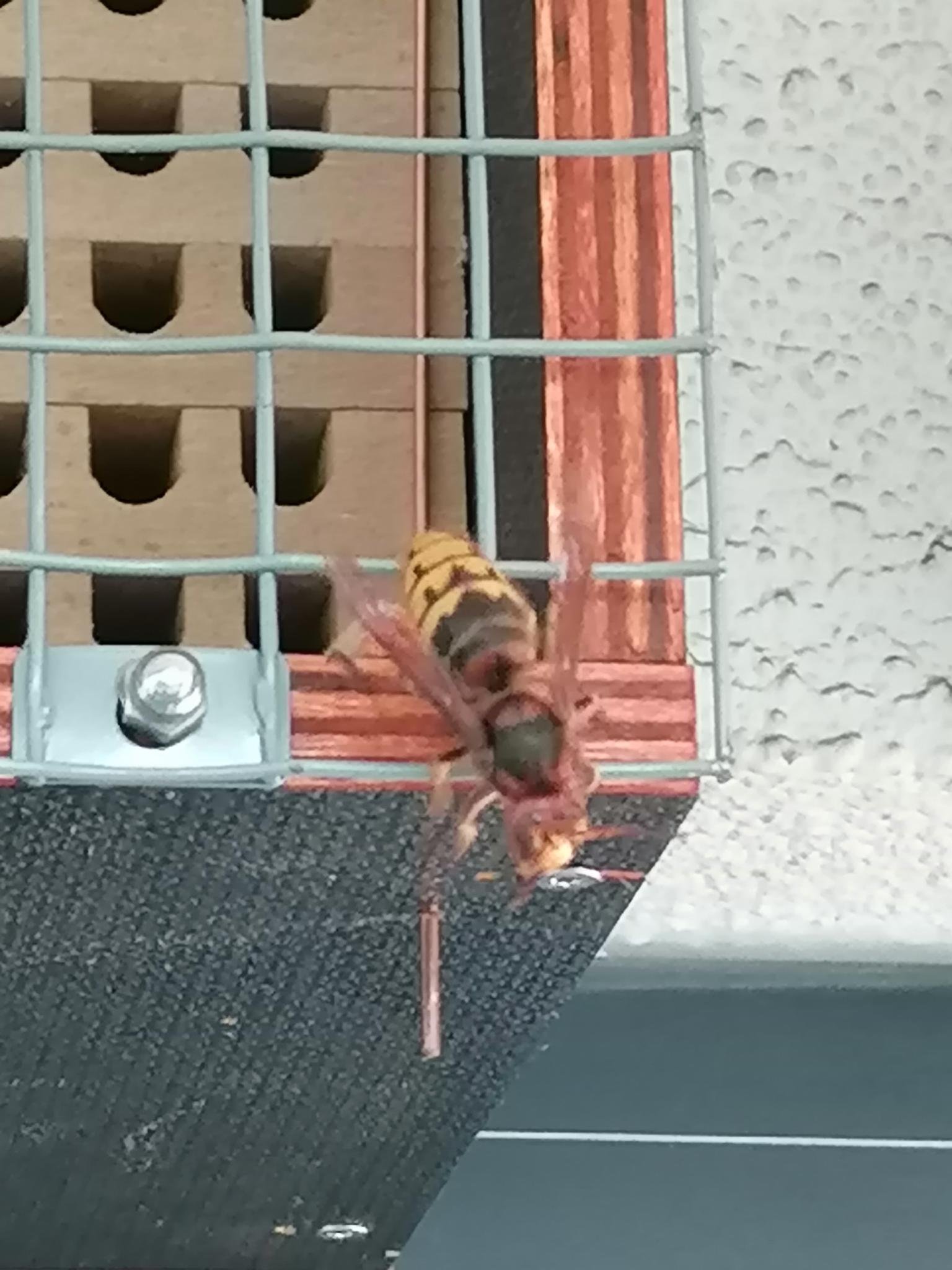 Hierbei ist mir aufgefallen, dass sich nahezu in jedem der fünf Kästen "Wohungslose" Wespen aufhalten.