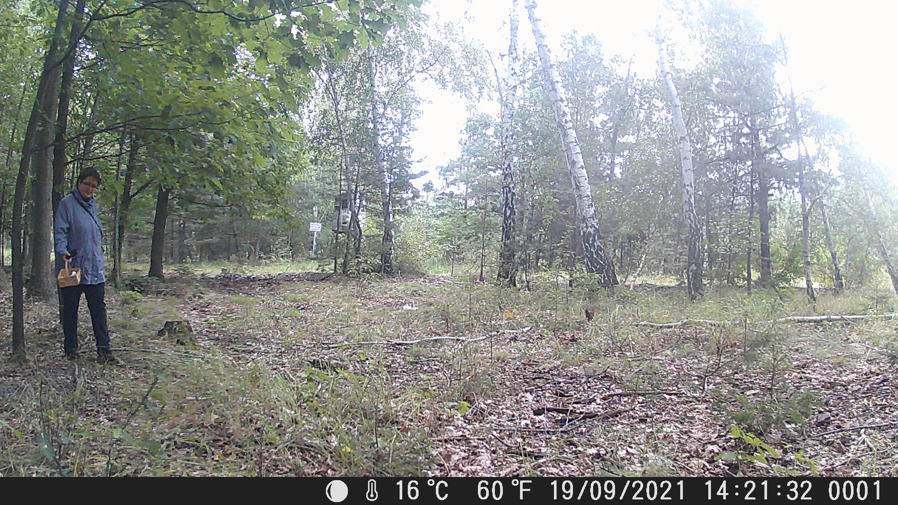 Ach, jetzt habe ich die Kamera zu zeitig eingeschaltet. Katja sucht erst einmal Pilze.