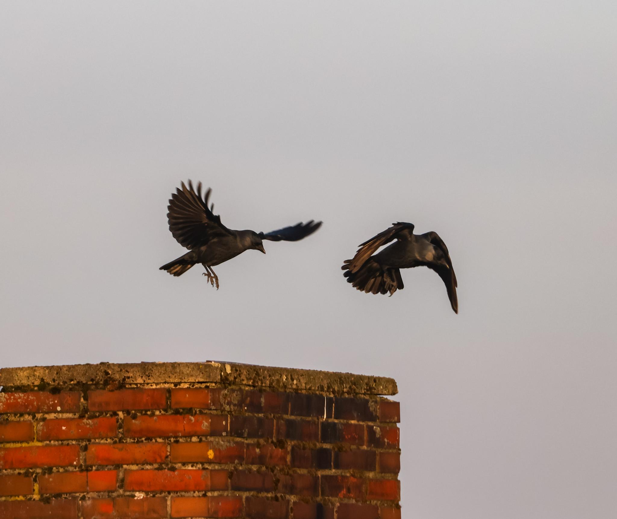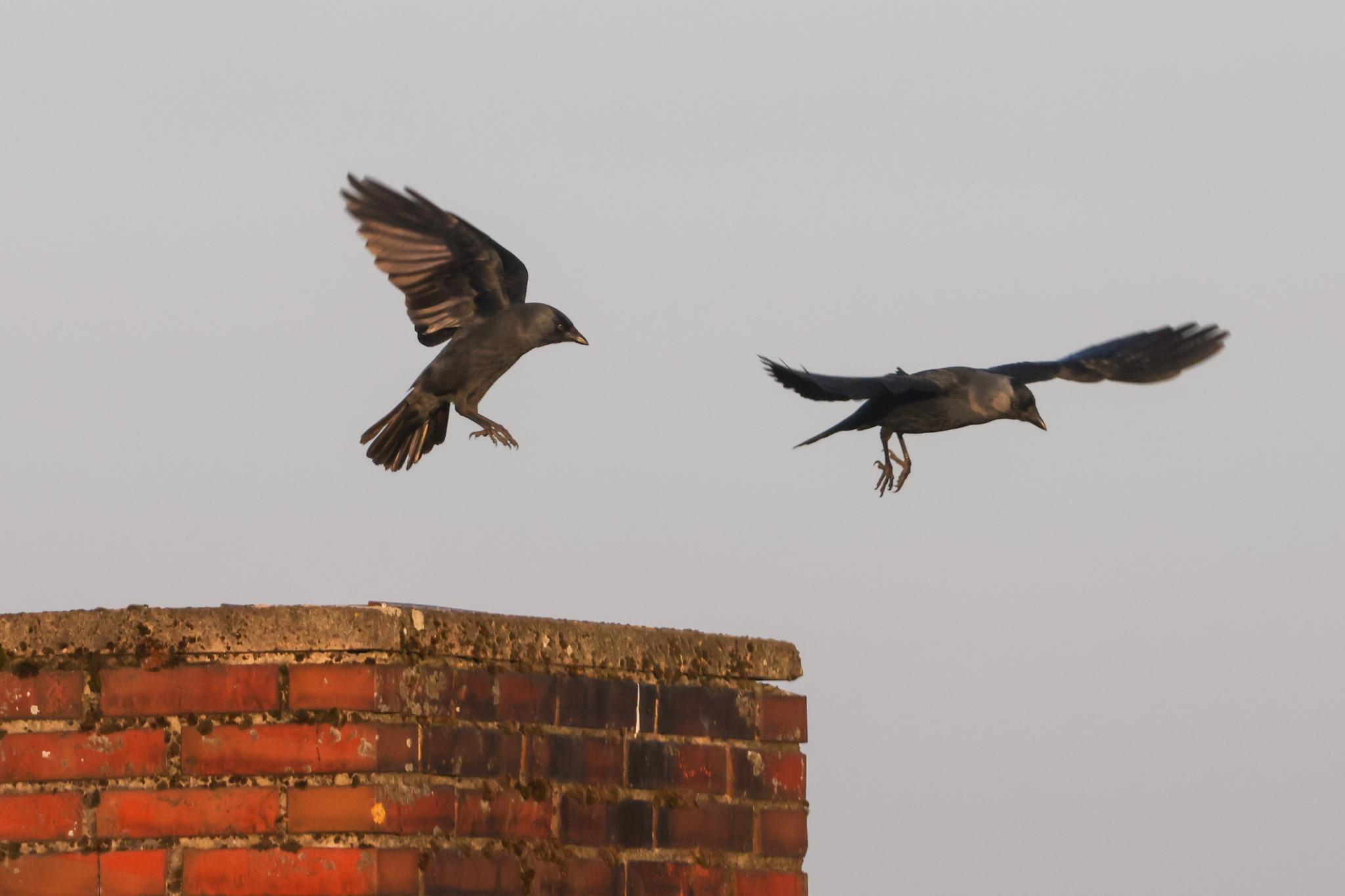 Mit der Kolonie ist das kein Problem. In den Nachbarhäusern und dem eigenen sind alle unbenutzten Schornsteinzüge von Dohlen belegt und sie breiten sich im ganzen Dorf aus.