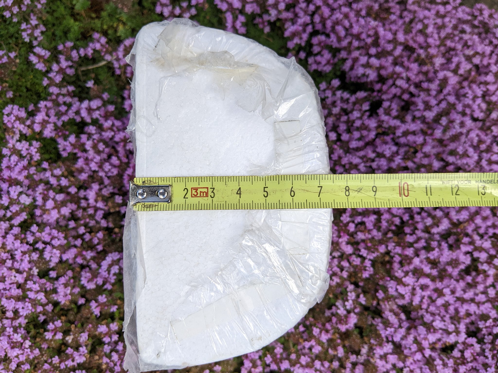 mein aus Styropor selbstgeschnitzer Rohling hat die Größtmaße 130 x 105 x 75 (mm) und verjüngt sich in allen Dimensionen nach vorne hin. Die damit hergestellten Nester erfreuen sich seit Jahren großer Beliebtheit.
