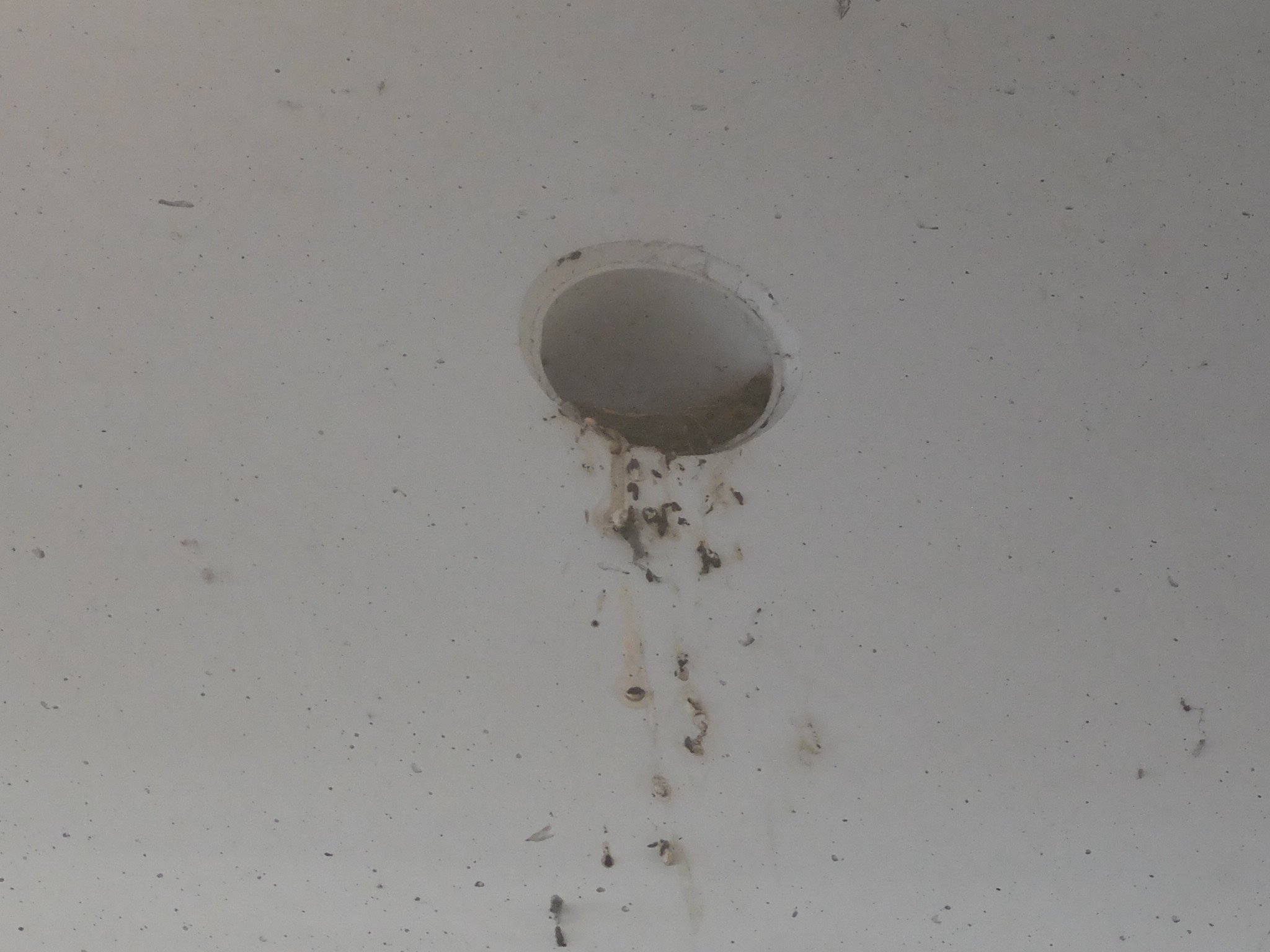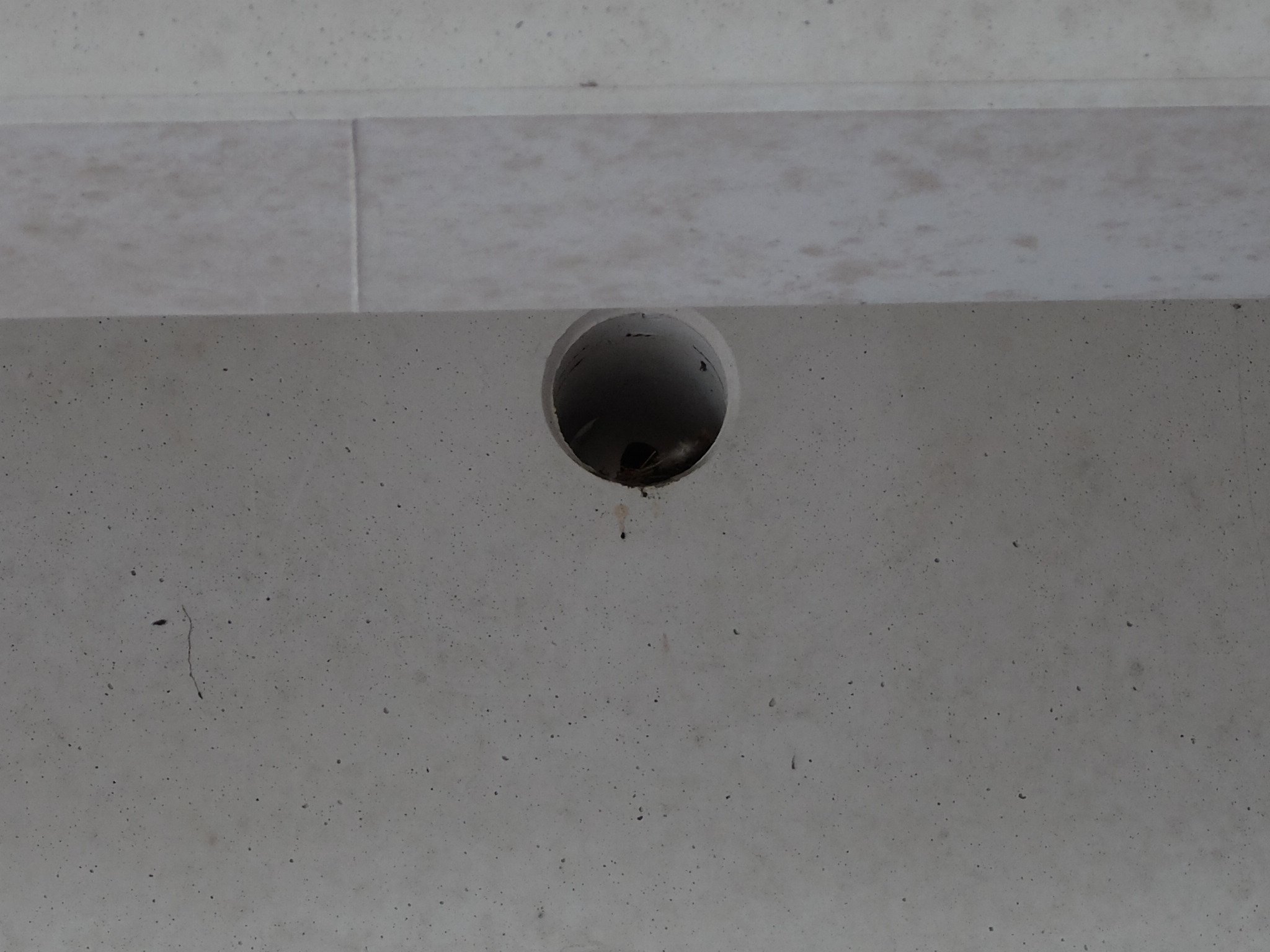 Sie brüten auf dem unterem Parkdeck in den Kabelkanalschächten. In jedem der Durchgangslöcher auf den Bildern ist ein Nest. Mindestens vier habe ich gezählt. Teils wurde noch gebrütet, teils gefüttert. Ein Mitarbeiter von Familia erzählte, Familia ließe auch Nester nach der Brut entfernen. (Ob das stimmt, kann ich nicht beurteilen. Immerhin haben sie sich im letzten Jahr vom NABU als Schwalbenfreundliches Haus auszeichnen lassen.)