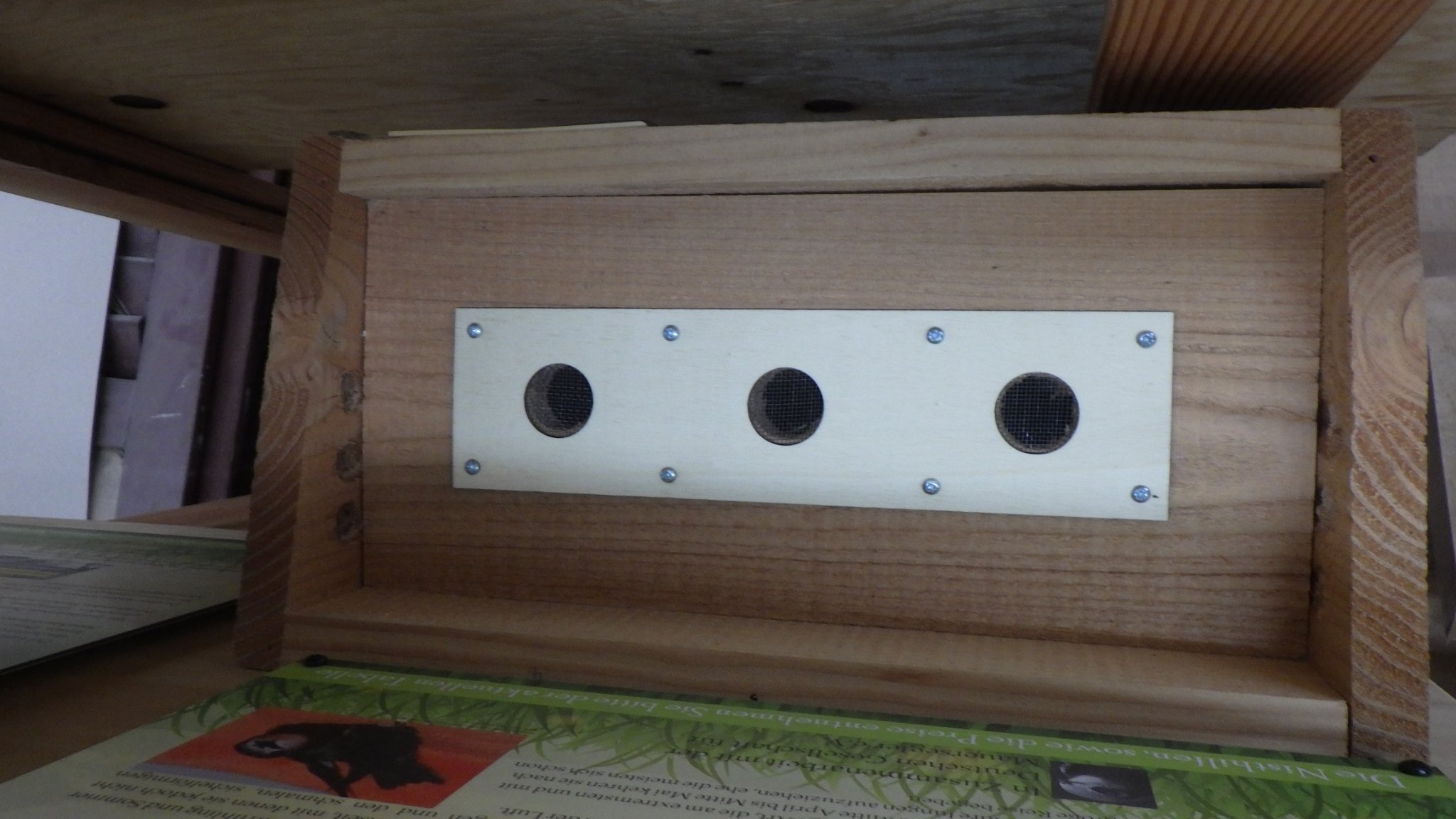Da ich dieses Jahr (2025) die gleiche Erfahrung machen musste und sich 4 Kohlmeisenjungvögel in den "Lüftungsschacht" über dem Brutraum verirrt hatten, die ich dann aus ihrer Lage befreit habe, habe ich den Hersteller (JVA Heimsheim) noch einmal angeschrieben...