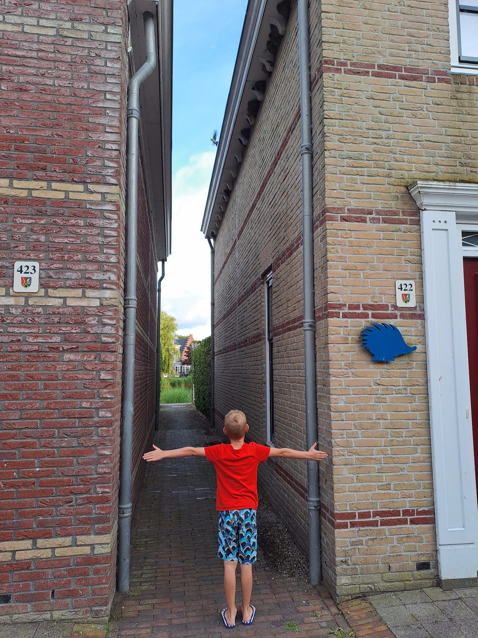Der Durchgang ist echt schmal; die Spannweite meines Jungen ist 120cm. Die Mehlschwalben flogen die Nester einfach von den Seiten oder direkt von oben an und schienen sich nicht daran zu stören.