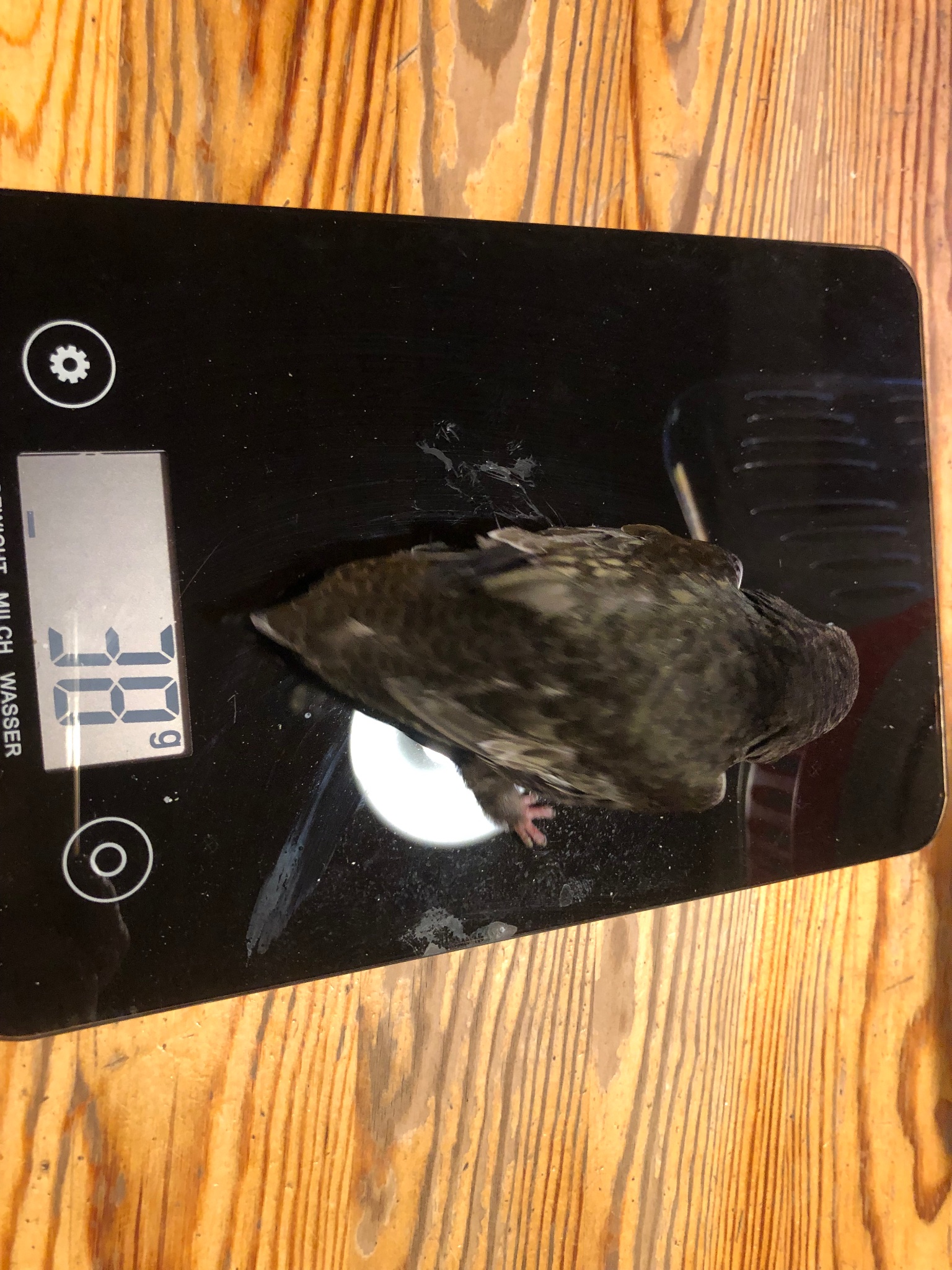 Einige Zeit später wurde mir ein weiterer JV gebracht den ich leider nicht aufnehmen konnte. Sowohl die Schwanzfedern wie auch die Schwungfedern waren sehr verkürzt was ich den Überbringern auch mitteilte.